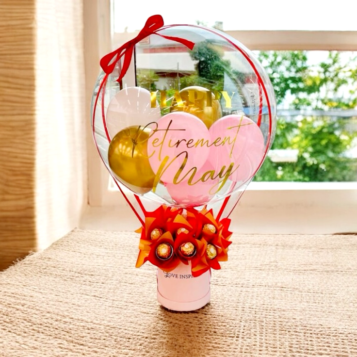 Happy Retirement Hot Air Balloon with 6 Ferrero Rocher Bouquet