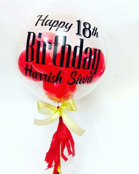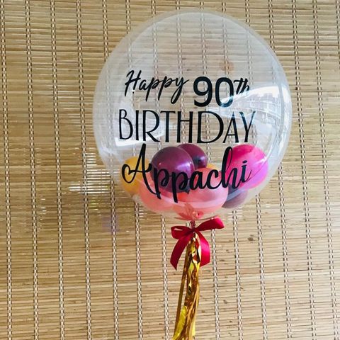 Make any celebration extra special with our customized bubble balloon. Each balloon can be personalized with a name or short message, making it perfect for birthdays, anniversaries, baby showers, proposals, or just because.