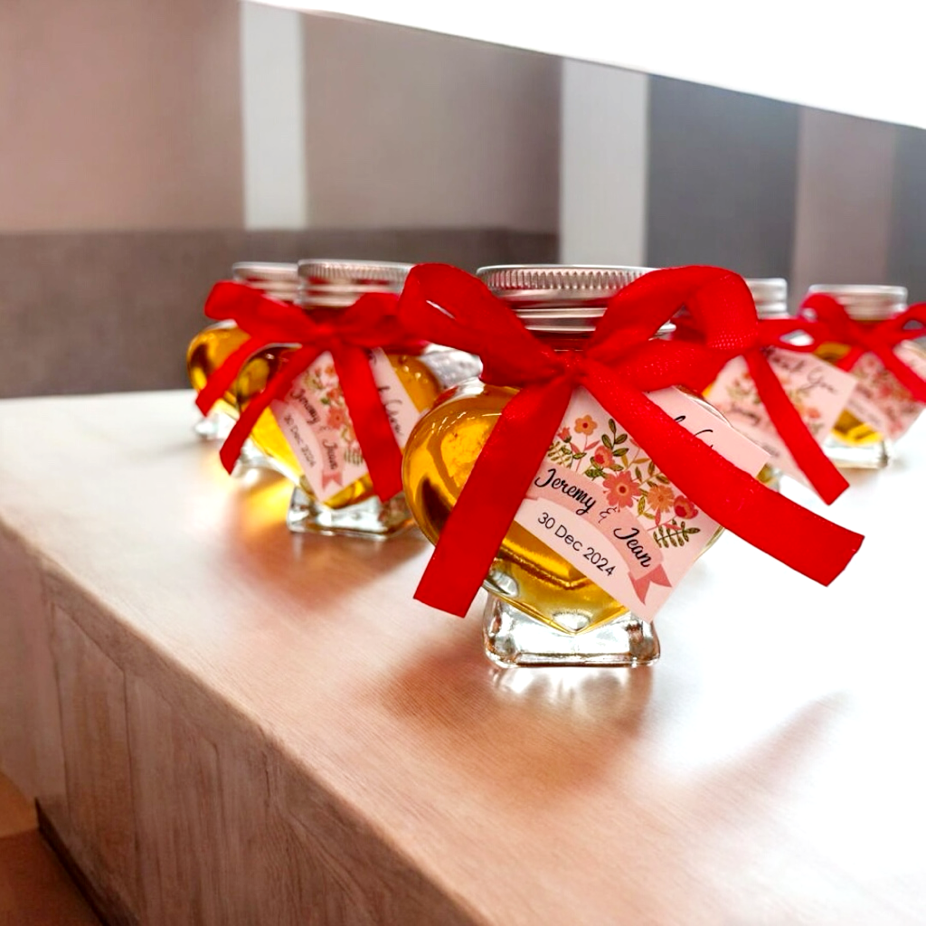 Honey in Heart Shaped Jar with Tali Guni / Ribbon (Price starts from 50 pieces)