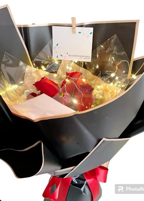 Love On Your Birthday Flower Bouquet + Personalized Red Foil Balloon